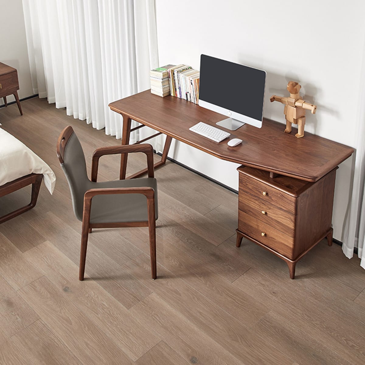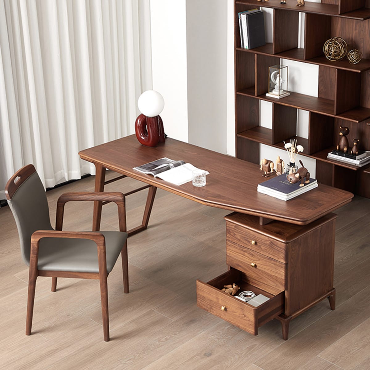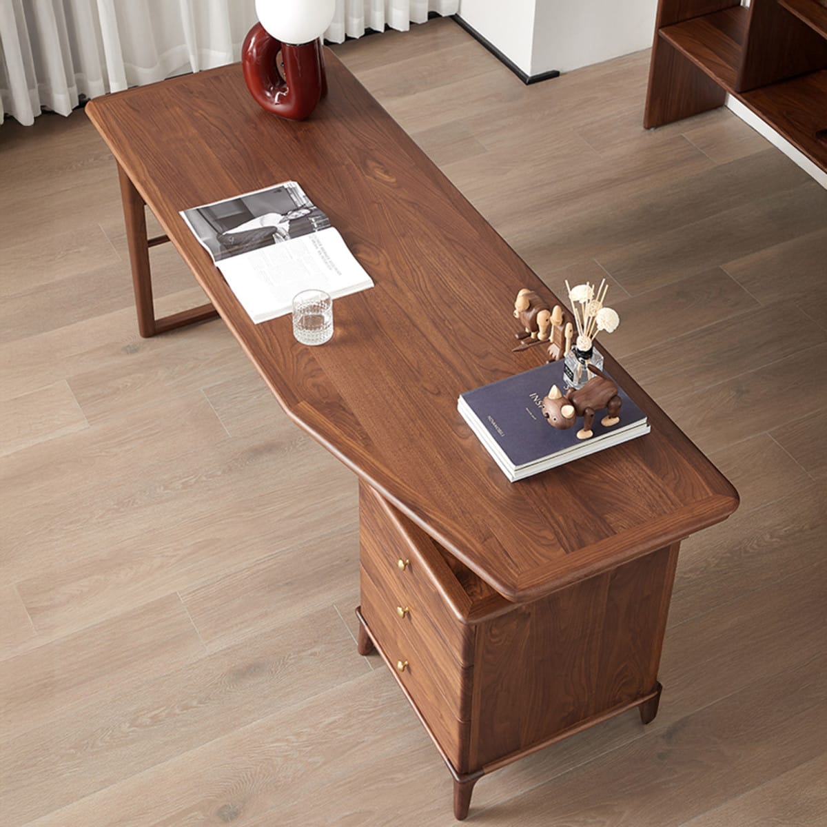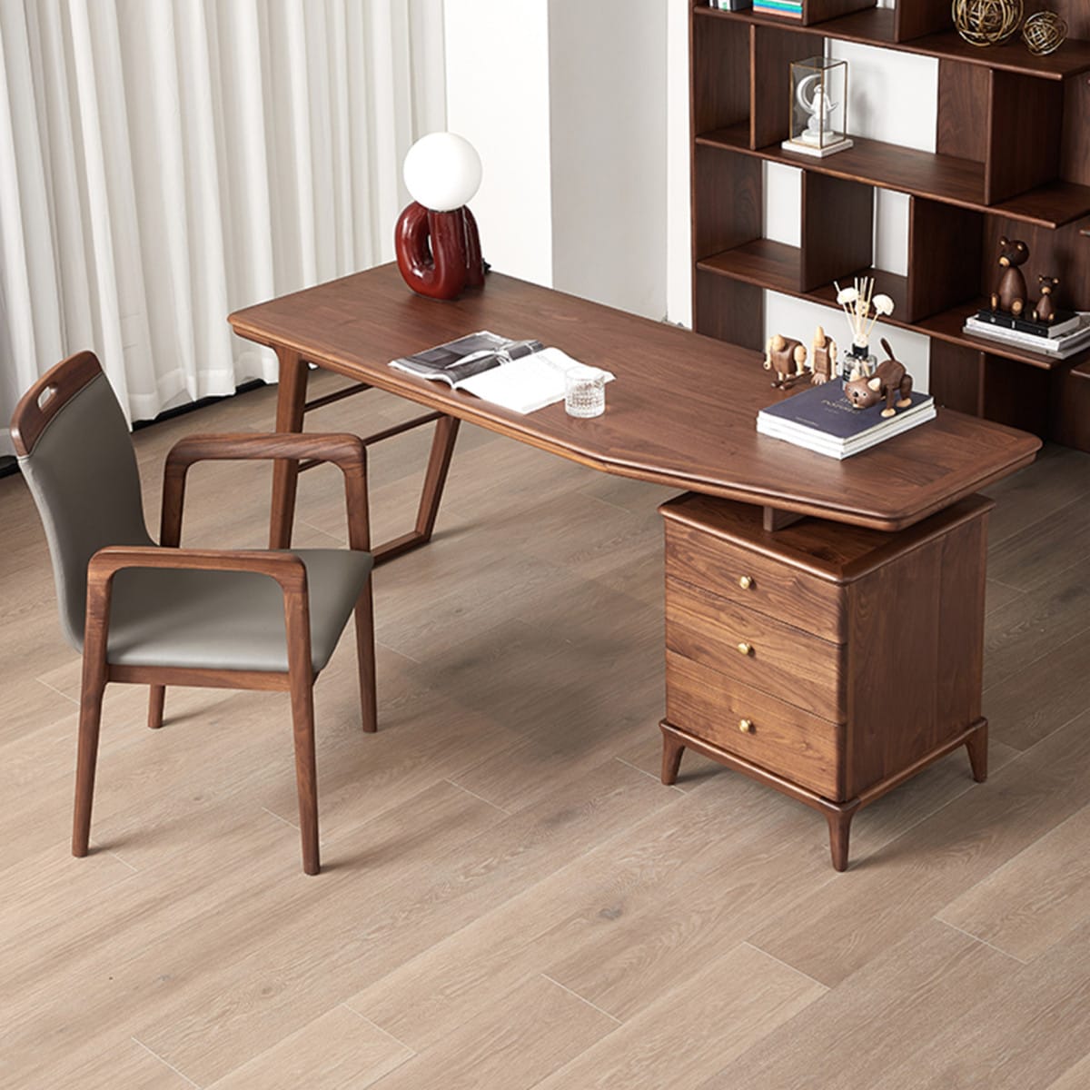 Với gam màu nâu óc chó trầm ấm, bàn làm việc gỗ sồi mang lại vẻ đẹp sang trọng, dễ dàng kết hợp với các món đồ nội thất khác trong không gian làm việc.