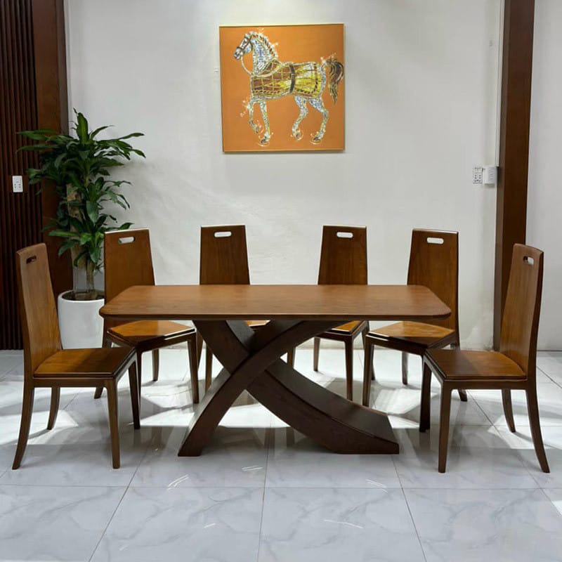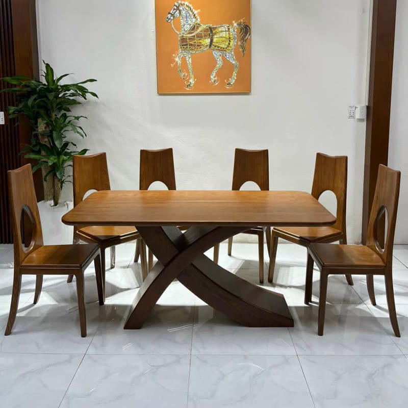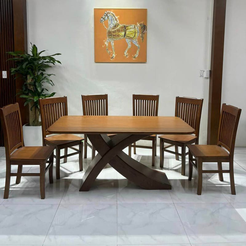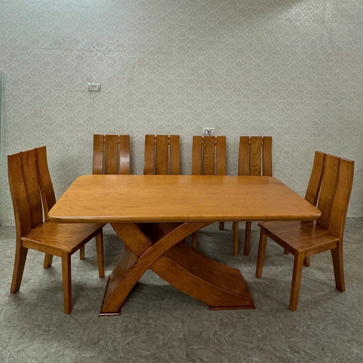 Bộ bàn ăn gỗ sồi chân chữ X cong – 6 Ghế – BAG27