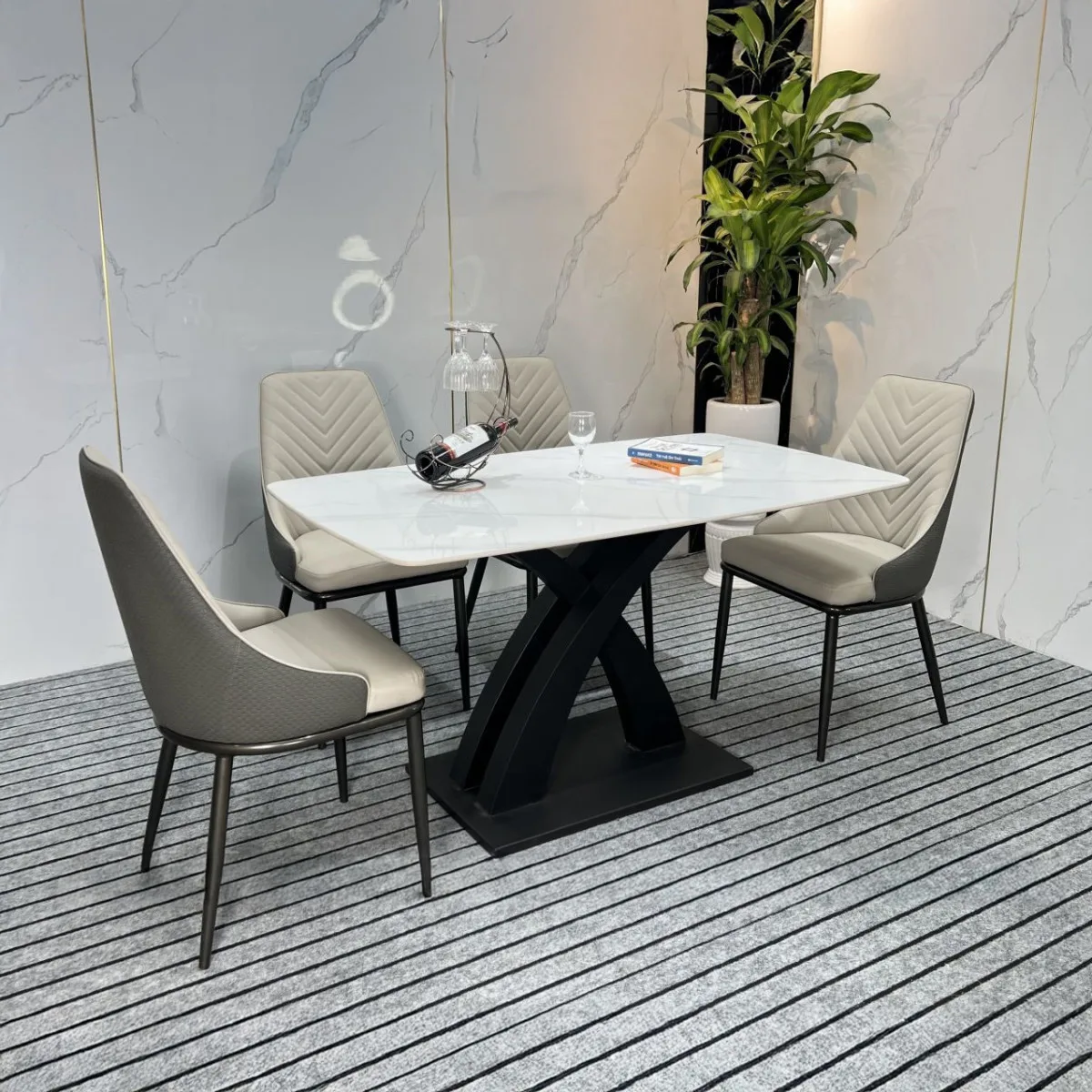 Bộ Bàn Ăn Mặt Đá Ceramic Chân X Cong Nhập Khẩu – 4 Ghế – BAD28