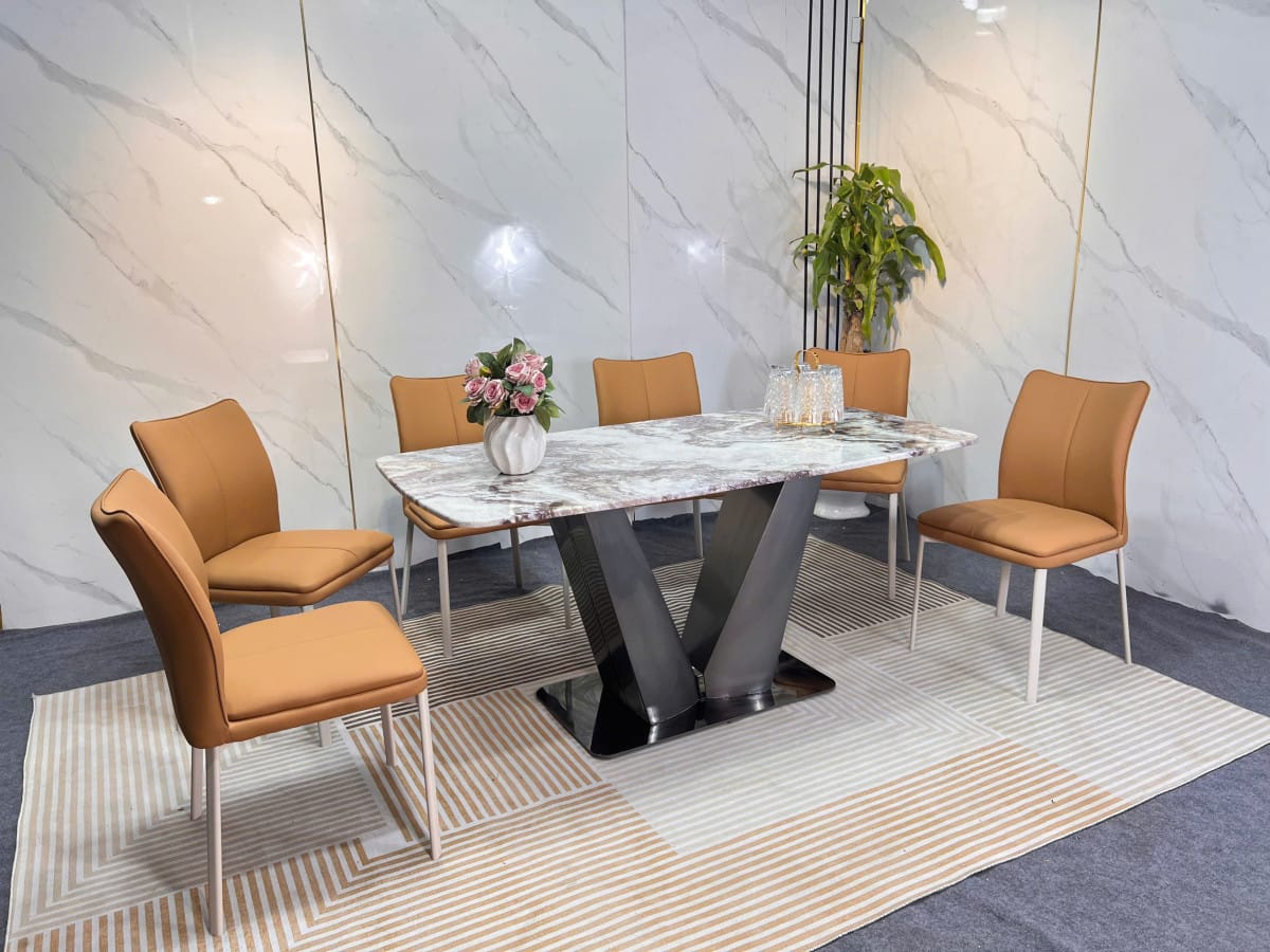 Bộ bàn Ăn Mặt Đá Chân Inox Hiện Đại 6 ghế