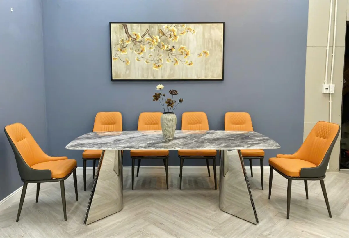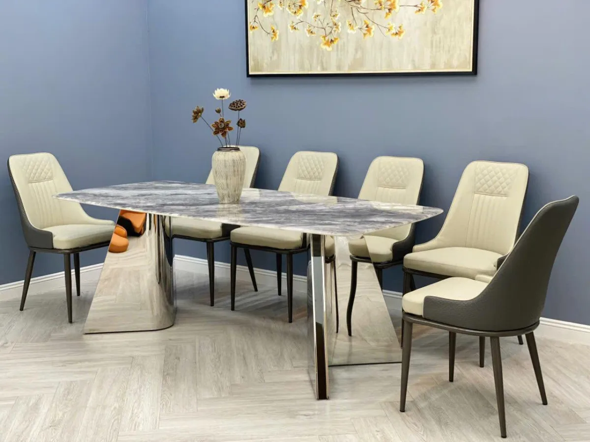 Bộ bàn ăn mặt đá chân tam giác đối xứng – 6 ghế – BAD091 – Sự Kết Hợp Hoàn Hảo Giữa Thẩm Mỹ Và Chất Lượng