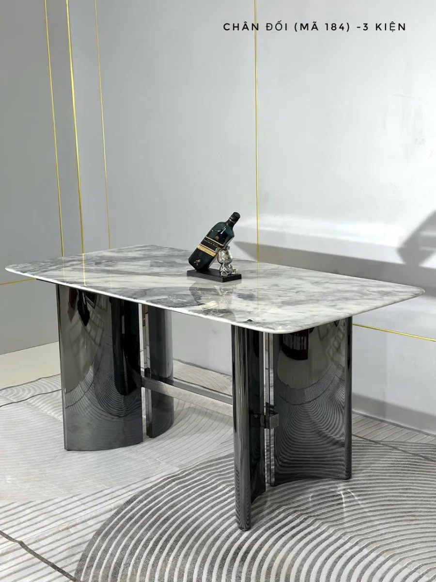 Chân bàn được thiết kế từ inox mạ titan, mang lại độ bền cao và khả năng chống gỉ sét, đảm bảo tuổi thọ lâu dài cho sản phẩm. Thiết kế chân bàn hiện đại không chỉ tạo sự vững chắc mà còn tăng thêm vẻ thanh lịch, phù hợp với xu hướng nội thất đương đại.