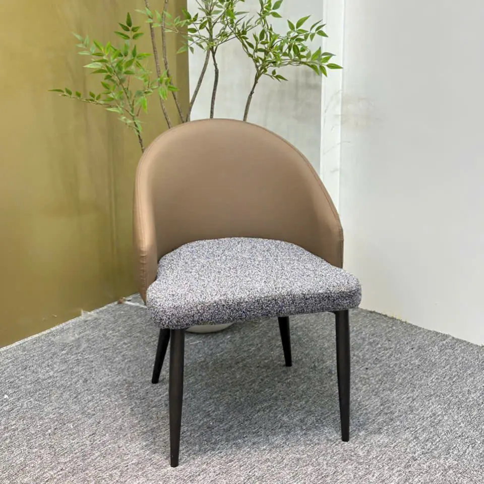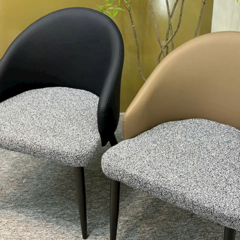 Ghế Ăn Đệm Vải, Lưng Bọc Da – Thiết kế tựa cong ôm lưng, thoải mái và thẩm mỹ