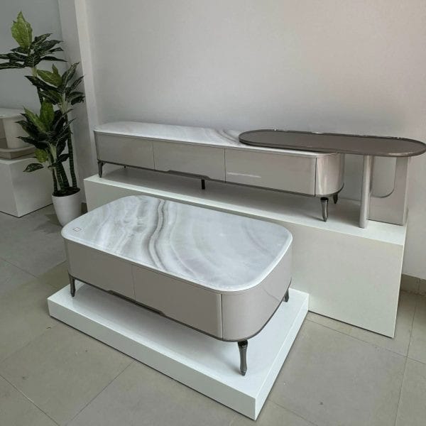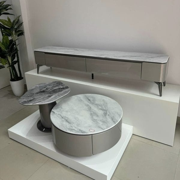 - Mặt Đá: Kệ tivi mặt đá, đặc biệt là đá marble, mang đến sự sang trọng và dễ dàng vệ sinh. Mặt đá có độ bền cao, chịu nhiệt tốt và tạo điểm nhấn thẩm mỹ cho sản phẩm.