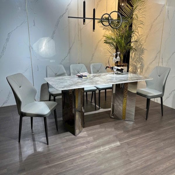 • Thiết kế sang trọng: Bàn ăn mặt đá thường đi kèm chân bàn kim loại hoặc gỗ tự nhiên, tạo nên vẻ đẹp đẳng cấp và hài hòa với nhiều phong cách nội thất.